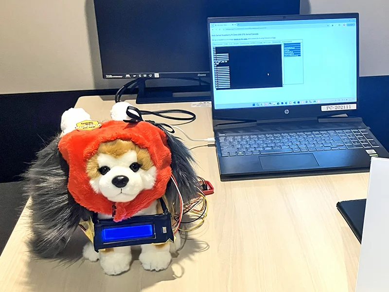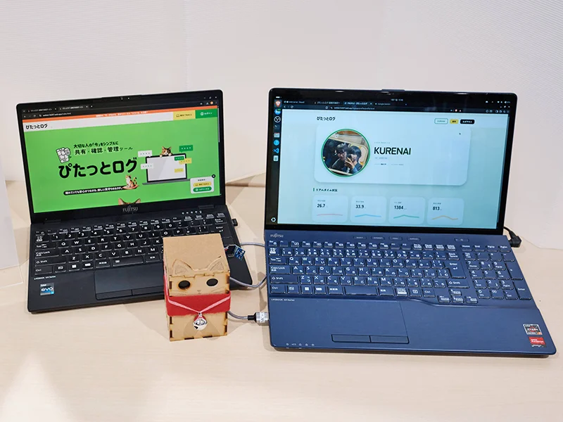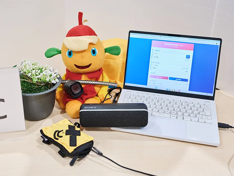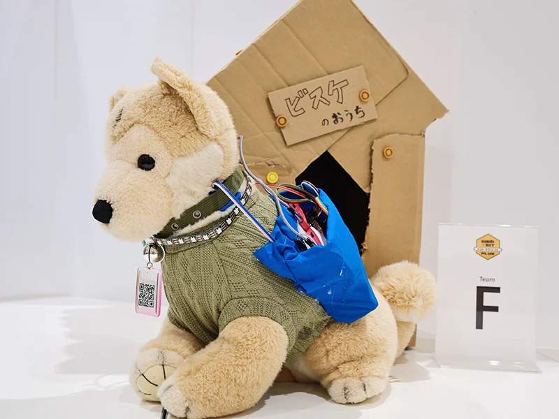 - 「まもるくん」は、災害時に離ればなれになったペットと飼い主を「位置」だけでなく「状態」まで繋ぐスマート首輪。GPS による位置測位に加え、心拍・体温センサーによるバイタルデータのリアルタイム監視を実現。心拍上昇などストレス兆候が出たときは遠隔で振動を与えて落ち着かせ、ペルチェ素子による温度調節で暑さや寒さの負担も軽減する。災害時の捜索中、ペットの名前などの音声信号に反応して光と音で存在を知らせる機能や、飼い主がすぐに現地へ向かえない状況を想定した QR コードによる飼育情報の共有など、発見者が迷わず保護に動ける機能も搭載している。