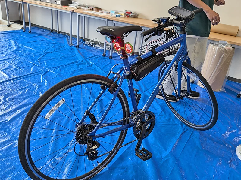 - 三重県が抱える「車社会による移動制限」や「自転車レーンの未整備化による事故」といった課題を解決するため、自転車と自動車のコミュニケーション不足に着目し、IoT 技術を活用して、自転車の位置情報やシグナルを可視化する作品を制作。ドライバーとサイクリスト双方の相互理解の促進や、危険予知や回避を支援する仕組みにより、事故削減を目指した。また、自転車盗難の多さという課題に対しても、IoT を用いたセキュリティ強化機能を組み込み、安全・安心に利用できる仕組みを導入した。将来的には AI による危険予測や電動キックボードなど他モビリティへの展開も視野に入れている。画像処理、GPS、音声認識による Neopixel の制御での工夫を行った。