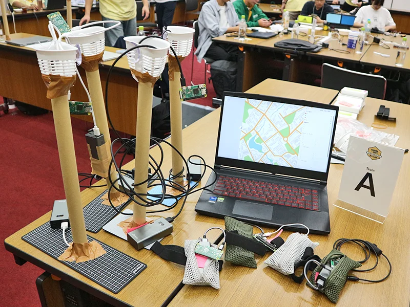 - 体を動かすのが楽しくなる、IoT × 鬼ごっこ体験ができる IoT システム。鬼ごっこのプレイヤーに受信端末を装着してもらい、フィールド内に点在する送信端末からの BLE 電波を受信する。受信した BLE の強さから現在のプレイヤー位置を推定し、リアルタイムで Web 上のマップに描画。軌跡を記録し、ゲームの展開を再現することで、フィールドでの駆け引きをそのままマップで体感できる。現代では屋外で体を動かす機会が減少し、運動が苦手な子は体育や部活への参加のきっかけを掴みにくい。運動の遊びや楽しさを強調し運動のハードルを下げることで、スポーツ参加率や運動習慣の増加を目指した作品。
